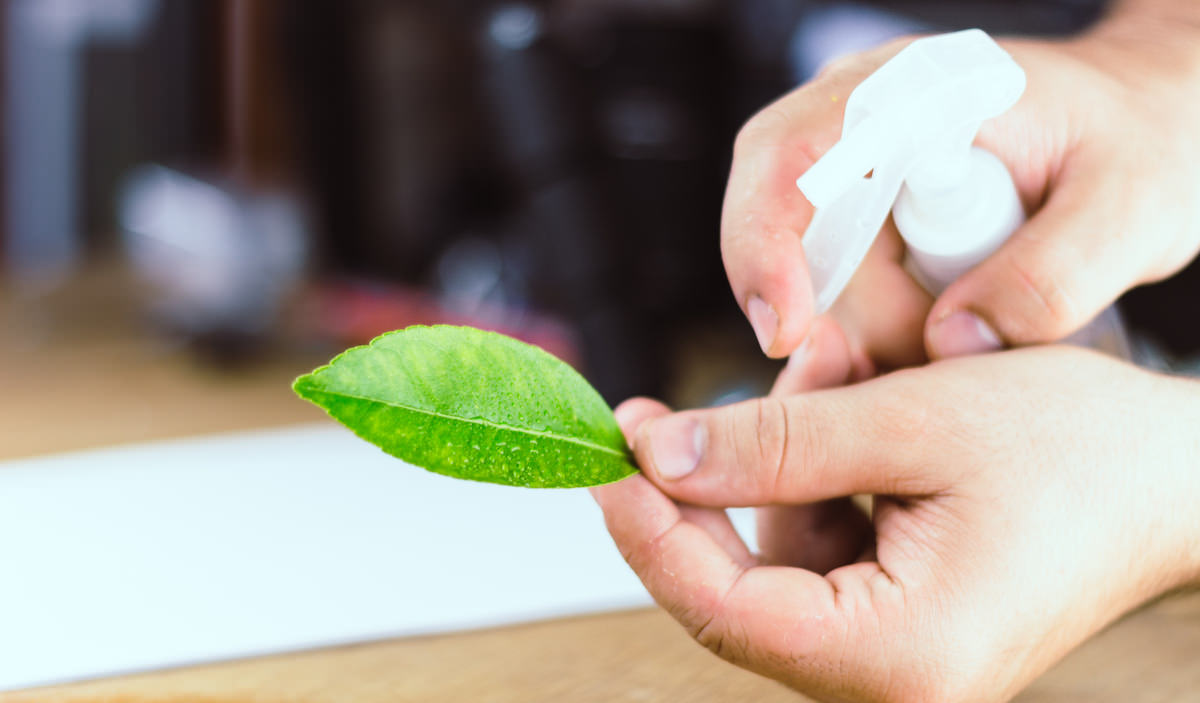 Infográfico com composição de fertilizante em folha de limoeiro